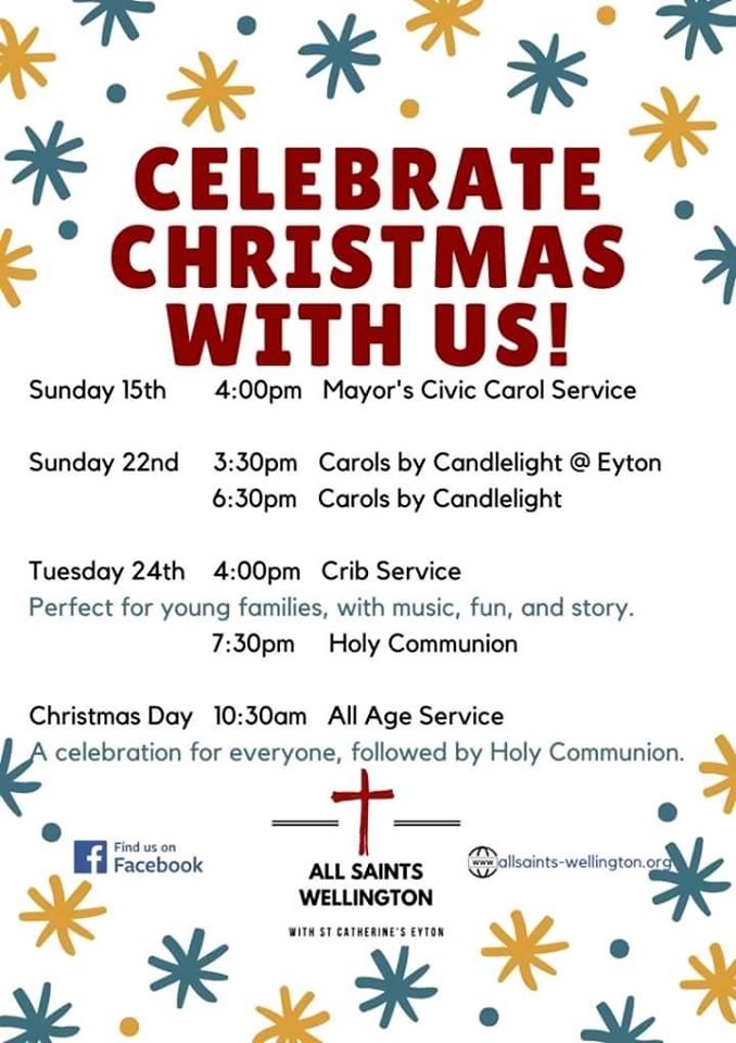 Celebrate Christmas with us! Liz Carter November 30, 2019 Uncategorized Please do join us at any (or all!) of these Christmas services – you will be very welcome! Post navigation Previous Previous post: Becky and Liam get baptised!Next Next post: all saints organ restoration appeal