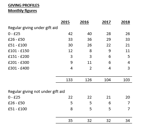 Also we have been blessed in 2015 and 2016 with a few very generous people but these numbers have now declined.