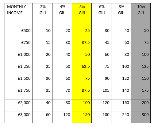 The Church of England ask people to prayerfully consider giving a proportion of their income.