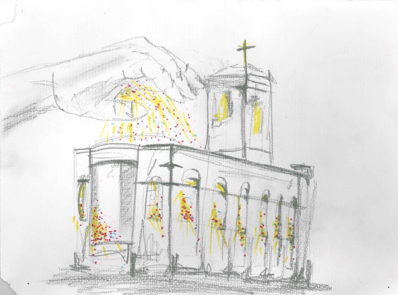 This was drawn by Hope Gwilliam some time ago. I saw the original in Susie’s office a little while ago and it just struck me. I love the sense of God pouring treasure into All Saints. It reminds me of the verse in Malachi in which God says,
