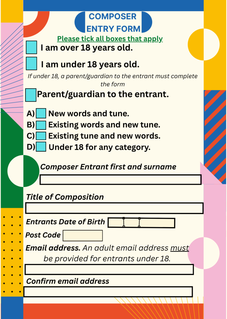 - Entries to be submitted in manuscript form, ( digitally or handwritten) to accompany the application form.